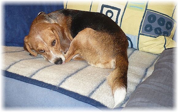 Falco ist ein Laborbeagle und kam, zusammen mit Elvis, am 26.02.2011 zu uns.