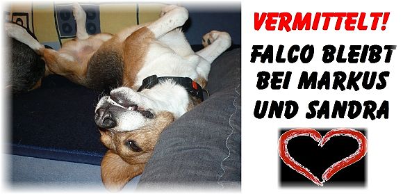 Falco ist ein Laborbeagle und kam, zusammen mit Elvis, am 26.02.2011 zu uns.